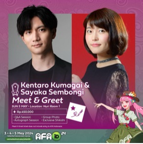 Terima kasih sudah bertemu di Meet & Greet bersama Kentaro Kumagai dan Sayaka Sembongi! dengan sesi tanya jawab eksklusif dan dapatkan shikishi bertanda tangan serta foto bersama!