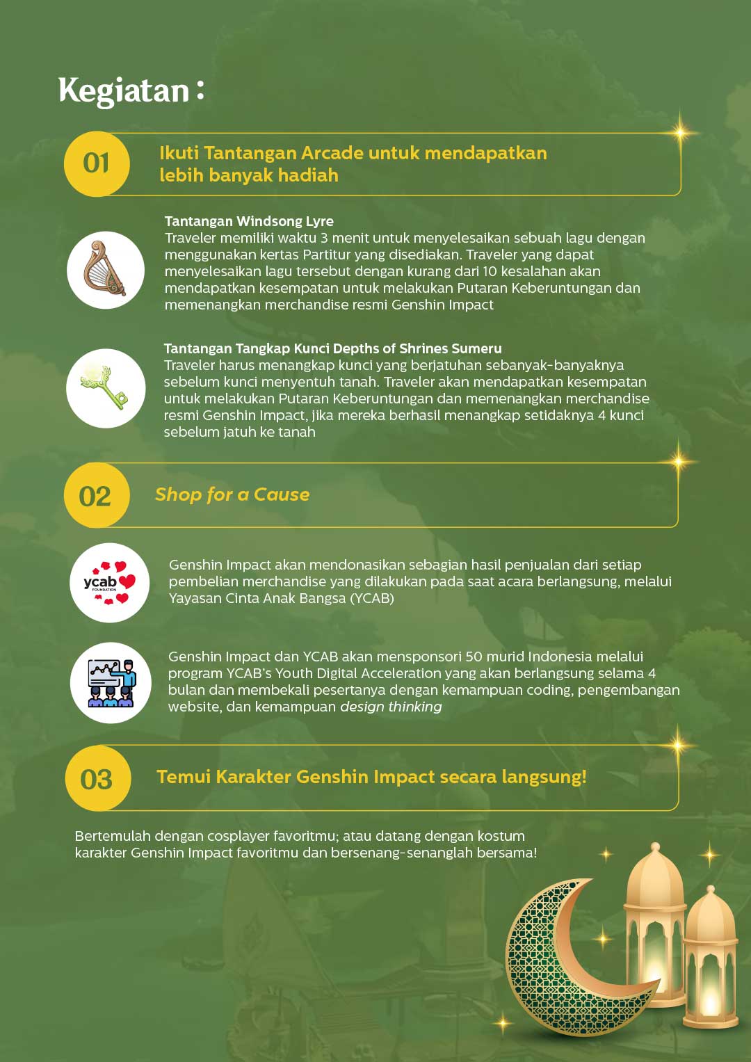 Untuk informasi lebih lanjut, silakan ikuti @GenshinImpactID di X (Twitter) dan Genshin Impact di Facebook.
