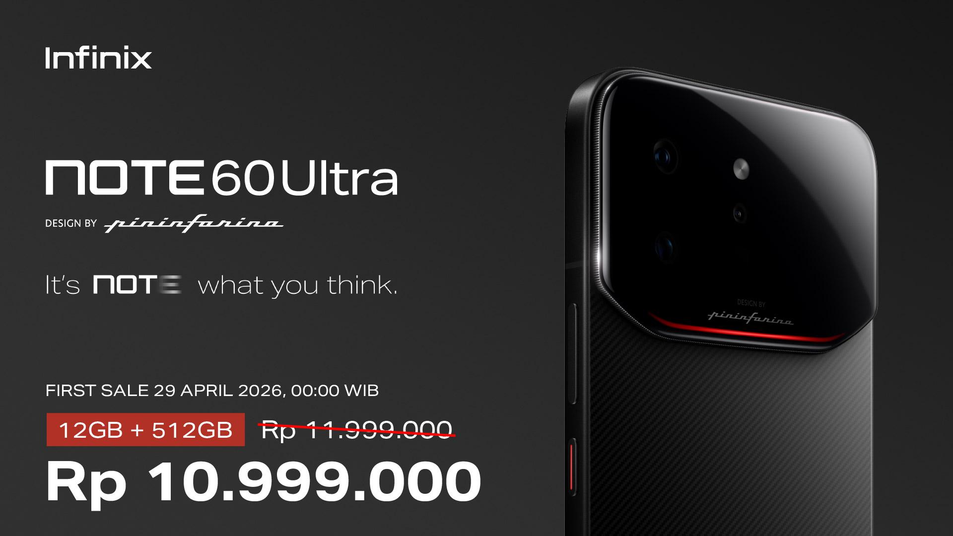 NOTE 60 Ultra tersedia dengan harga Rp 11.999.000 dan hadir dengan harga spesial Rp 10.999.000 pada penjualan perdana online mulai 29 April 2026 pukul 00.00 WIB. Untuk pembelian offline mulai 22 April, pengguna juga dapat menikmati kemudahan cicilan melalui Kredivo dan Home Credit.