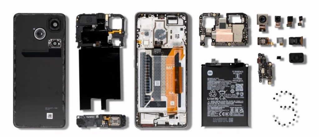 Segala isi dari bagian utama seperti Kamera, Baterai, NFC, Speaker, LED Flash, mainboard, dan lainnya bersama dengan spesifikasi utama seperti SoC Snapdragon 8s Gen 3 nya, RAM LPDDR5X, Memori Penyimpanan, UFS 4.0 dan juga hadir IC Chip dari Xiaomi sendiri yaitu Surge P2 bisa terlihat disini. Semuanya di cover oleh layar yang dilindungi Gorilla Glass Victus dan juga Vapor Chamber untuk mendinginkan seluruh komponennya.