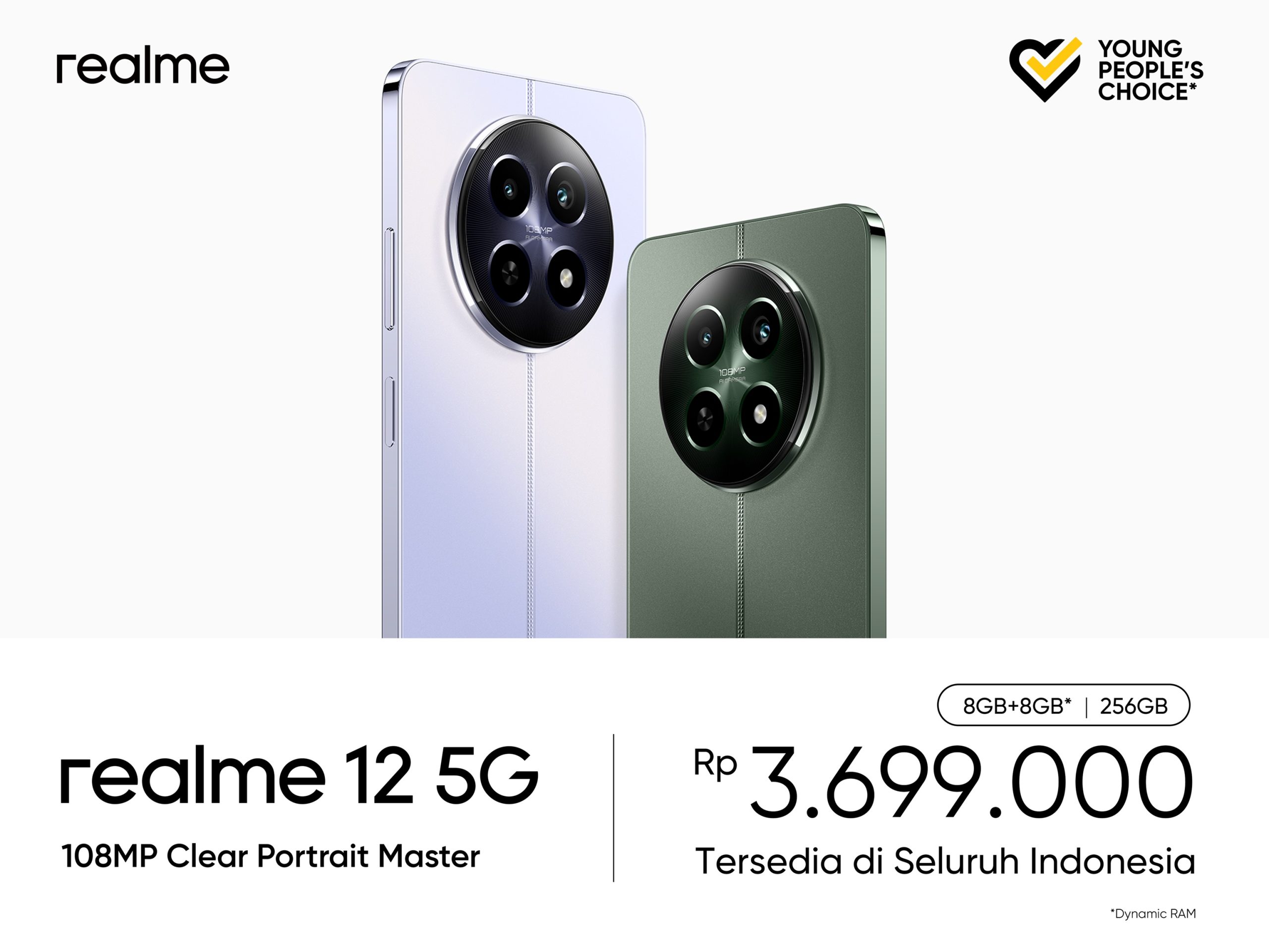 realme 12+ 5G tersedia dalam dua pilihan warna, Pioneer Green dan Navigator Beige, realme 12+ 5G (8GB+8GB*|256GB) tersedia dengan harga Rp4.199.000, sedangkan realme 12+ 5G (12GB+12GB*|512GB) dengan harga Rp4.999.000, bisa didapatkan melalui kanal penjualan resmi baik online seperti realme.com atau offline seperti di realme Brand Store dan toko mitra resmi di seluruh Indonesia.