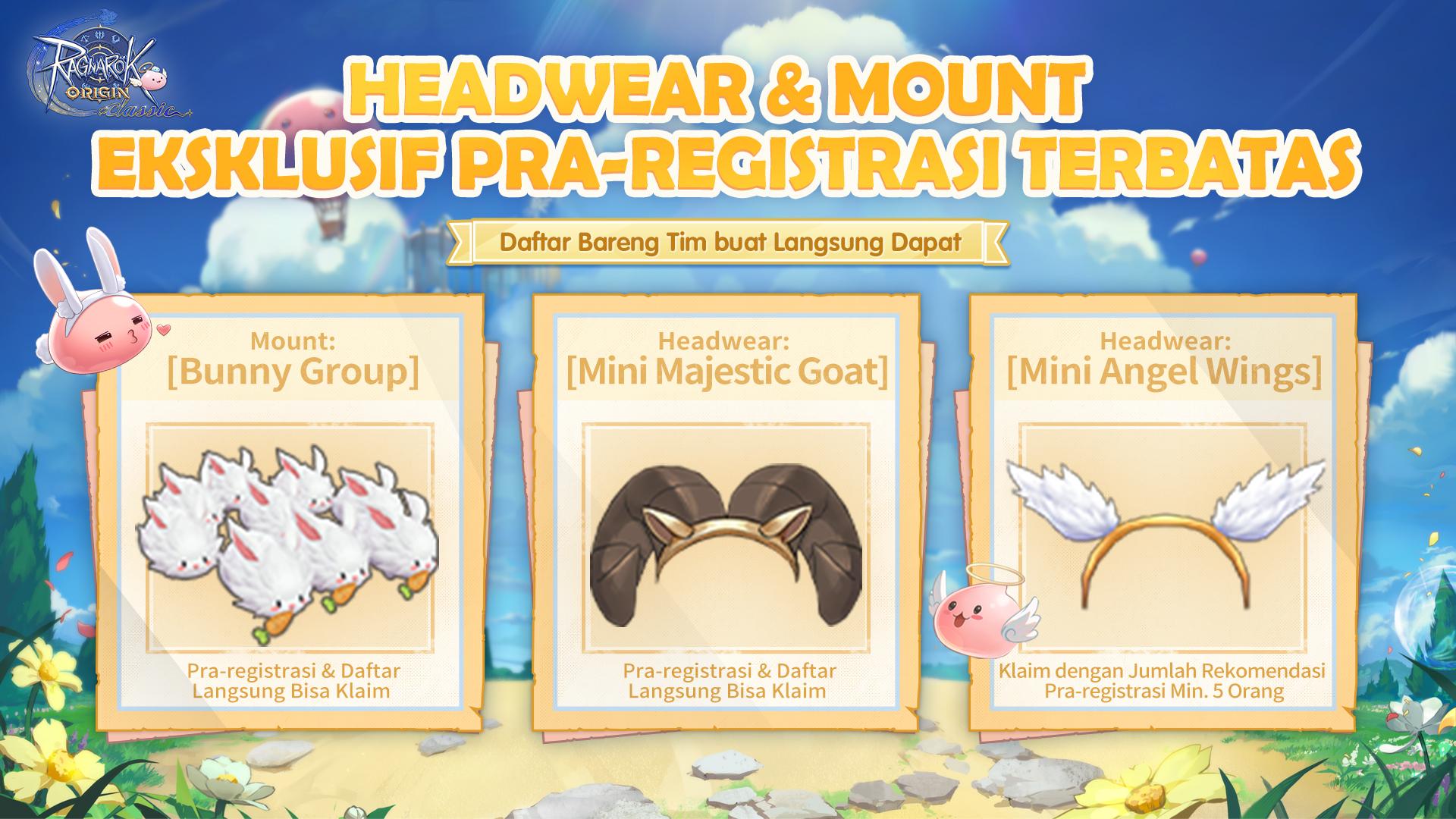 Game ini kini resmi membuka pra-registrasi, selesaikan pra-registrasi untuk mendapatkan Mount [Bunny Group] dan Headwear [Mini Majestic Goat], veteran player yang berhasil mengajak teman untuk ikut menyelesaikan pra-registrasi dan mengumpulkan total 5 orang, akan menerima Headwear [Mini Angel Wings], ada juga kesempatan memenangkan iPhone 17 Pro lho!