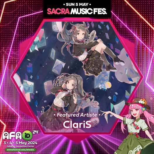 Yes! ClariS akhirnya datang ke Indonesia! Setelah bertahun-tahun hanya jadi wishlist, akhirnya ClariS akan perform di AFAID24. Pembawa lagu yang exist dari jaman lawas hingga sekarang ini hadir untuk perform di Indonesia! Lagu-lagunya sudah pasti tidak asing, karena lagu khas reunion, irony, CLICK, Step, Hitorigoto, Colorful, Connect (ya siapa yang bisa lupa horornya haha..) dan yang paling baru, Alive dari anime Lycoris Recoil yang dapat approval dari Hideo Kojima. Siap-siap karena ini bahkan akan menjadi konser yang petjah abis!