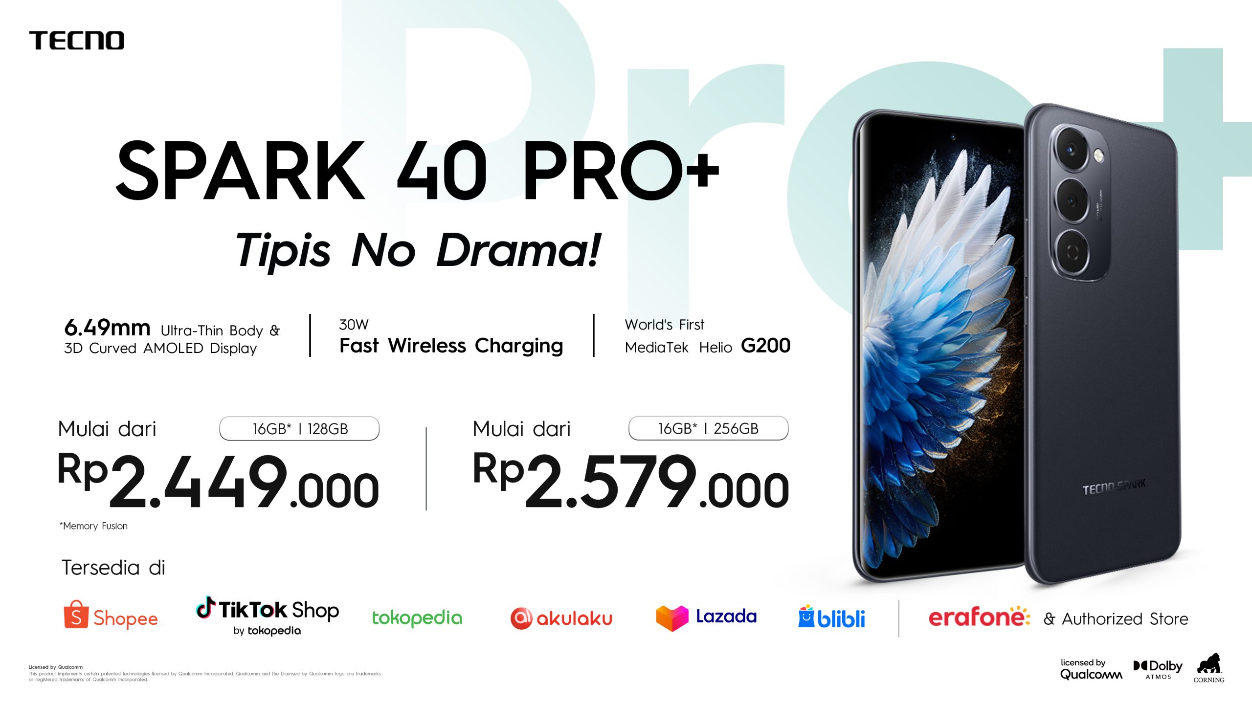 “Kehadiran lini SPARK 40 Pro Series adalah wujud komitmen TECNO untuk terus menghadirkan inovasi yang relevan dan powerful di pasar Indonesia. Dengan desain ultra-tipis, performa andal, dan pengalaman visual kelas flagship, kami ingin membawa teknologi premium lebih dekat ke tangan semua orang. Ini merupakan langkah besar menuju masa depan smartphone yang lebih cerdas, stylish, dan fleksibel untuk gaya hidup modern zaman kini” Ungkap Anthoni Roderick, PR Manager TECNO Indonesia.